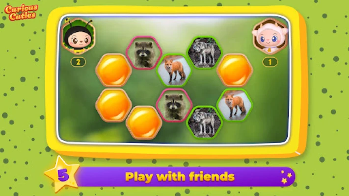 Moja ya faida zisizopingika za programu hii ni kwamba inaruhusu kucheza si peke yake tu, bali pia na wachezaji wawili! Kila mchezaji anaweza kuchagua mhusika anayempenda kucheza naye: iwe ni Nyuki, Sungura mwenye haiba, Jogoo mchangamfu, au Mbuzi mwenye busara. Mchezo huu unajivunia picha zenye ubora wa hali ya juu na rangi za kuvutia zinazojumuisha kwa uwazi rangi, maumbo, fani, wanyama, ndege, maua, mboga, matunda, berries, magari, na michezo. Hii si tu programu ya maswali au mchezo wa kumbukumbu, bali ni programu shirikishi ya simu iliyoundwa kwa namna ambayo inamfanya mtoto afurahie sana kuchunguza ulimwengu unaomzunguka kwa njia ya kusisimua na kuelimisha.