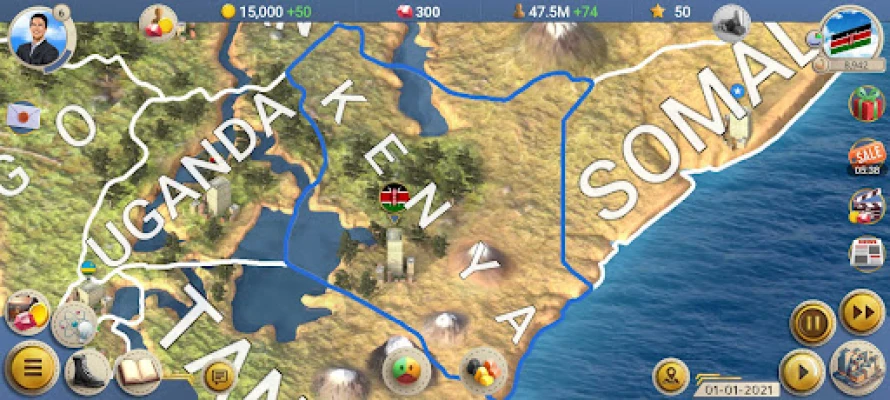 Uongozi wako utakabiliwa na changamoto zisizoisha, zikiwemo majanga ya asili, milipuko ya magonjwa, maandamano ya wananchi, migogoro ya kiuchumi, na vitisho vya maharamia na magaidi. Kila siku inaleta jaribio jipya la uwezo wako wa kusimamia na kuokoa taifa lako. Ni juu yako kuamua, kutenda, na kuhakikisha maisha marefu na mafanikio kwa raia wako. Katika ulimwengu huu wa mkakati wa kina, matendo yako yataunda urithi wako.