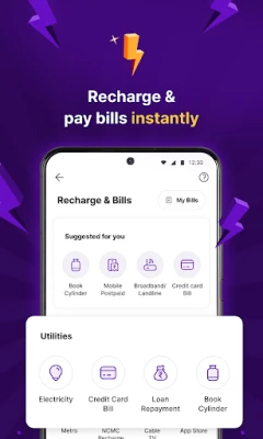 Jifurahishe na urahisi wa kufanya malipo mbalimbali mtandaoni na nje ya mtandao. Lipa ununuzi wako kwenye tovuti kama Flipkart na Amazon, au oda za chakula kutoka Zomato na Swiggy, na hata uhifadhi wa safari kupitia Makemytrip. Kwa malipo ya ana kwa ana, tumia kipengele cha Changanua na Lipa kupitia Msimbo wa QR kwenye maduka ya mitaani, maduka ya dawa, au migahawa. Zaidi ya hayo, PhonePe hukuwezesha kulipia bili mbalimbali za huduma kama vile umeme, maji, gesi, intaneti, na hata bili za kadi za mkopo, pamoja na kuongeza salio la simu za rununu na DTH kwa urahisi.
