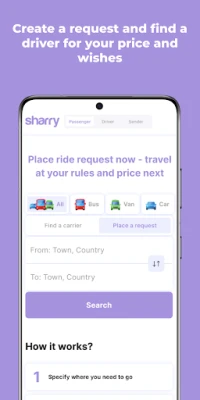 Gundua njia mpya kabisa ya kusafiri ukitumia Sharry. Programu hii inakupa lango la safari rahisi, zinazonyumbulika, na za bei nafuu. Panga na ufurahie safari zako kwa uhuru kamili, ukigundua ulimwengu kwa urahisi usio na kifani.