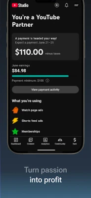 Dhibiti kikamilifu mwonekano na maudhui ya chaneli yako. Sasisha maelezo ya video fupi, rekebisha mipangilio ya mitiririko mubashara, na hariri video zako za kawaida kwa urahisi, ukihakikisha chaneli yako inaakisi ubora na ujumbe wako. Na kwa wale wenye ndoto ya kubadilisha ubunifu wao kuwa fursa ya kibiashara, zana hii inafungua njia ya kuchuma mapato. Tuma ombi la kujiunga na Mpango wa Washirika, anza safari yako ya kibiashara, na ugeuze shauku yako kuwa chanzo cha mapato.